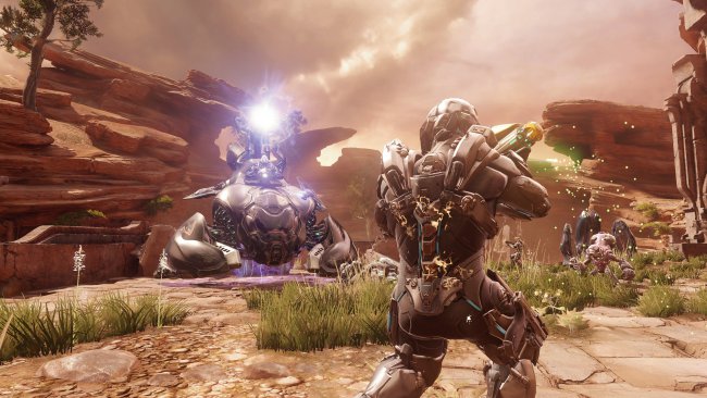 But under 343i's watch the Covies have gotten duller, with more muted, lower-contrast colors (excepting the Jackal's shields, which are still bright blue or yellow). Combined with their tendency to "over-design" everything by adding a ton of unnecessary details and you get situations where it's hard to tell higher-ranking Covies apart from the weaker ones in the heat of battle. Even their formerly bold purple vehicles look dull and muted much of the time, depending on the lighting. Nothing really "pops" anymore. Bungie's art department simply made better use of color, lighting, etc. Love 'em or hate 'em, Bungie knows how to make some damn good-looking games. Almost makes me wish Marcus Lehto & crew had worked with 343i on Halo 4 and then transferred fully over to 343i once Bungie was done with Halo. Destiny may have plenty of faults, but its visuals are most certainly not one of them.