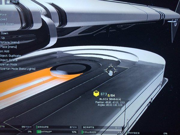 I started out just trying to create a starting platform for a map. I was just learning what kind of objects I had access to, and ended up with shallow steps that curved at the end. There were lights in the ceiling that actually projected light below. I could adjust the color of every block and even the glass.